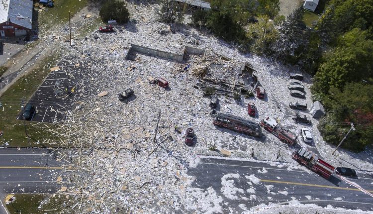 Edifício em Farmington, no Maine, ficou totalmente destruído pela explosão — Foto: Jacob Gage vía AP