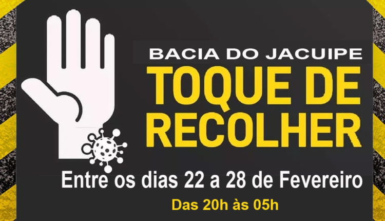 Todos os 15 municípios da Bacia do Jacuípe terão Toque de Recolher das 20 hàs 05h, a partir desta segunda-feira
