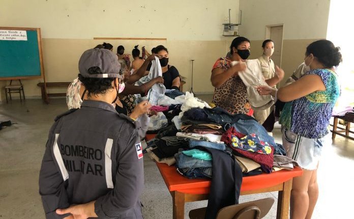 No Norte do estado, equipes do 15º GBM e do 20° BPM se uniram e entregaram cerca de 50 toneladas de roupas e calçados no bairro de Prainha, em Paulo Afonso.