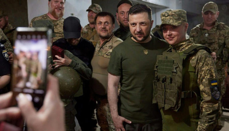 A Rússia intensificou nesta segunda-feira (20) os ataques contra as regiões de Kharkiv e Donetsk, no nordeste e leste da Ucrânia, poucos dias antes de os 27 países da União Europeia (UE) discutirem a candidatura de Kiev ao bloco. © HandoutO presidente ucraniano Volodymyr Zelenski ao lado de militares em Mykolaiv, em 18 junho de 2022