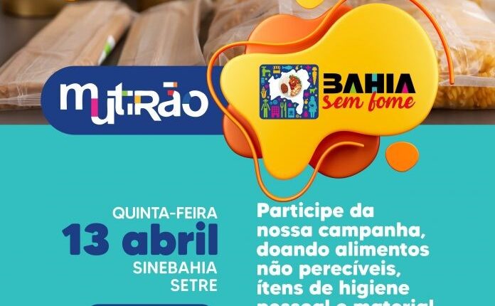As unidades do SineBahia que participam do Programa Bahia Sem Fome fazem um mutirão para arrecadação de alimentos não perecíveis nesta quinta-feira (13), das 8 às 17h. A Secretaria do Trabalho, Emprego, Renda e Esporte (Setre) montou uma ação de arrecadação nessas 61 unidades e em 23 lojas dos Centros Públicos da Economia Solidária (Cesol), em todo o Estado.