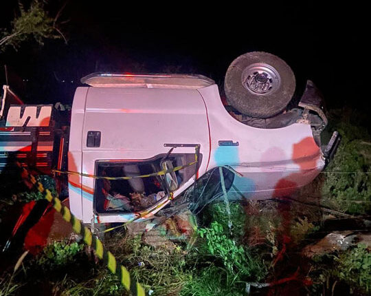 Um caminhão Ford F-350 capotou na noite de quarta-feira (7) na BA-120, nas proximidades da Serra do Lajedo, entre os municípios de Santaluz e Queimadas, na região sisaleira da Bahia.