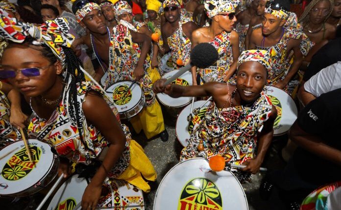 Após a emblemática saída do Curuzu, o Bloco Ilê Aiyê segue para o desfile no Campo Grande.