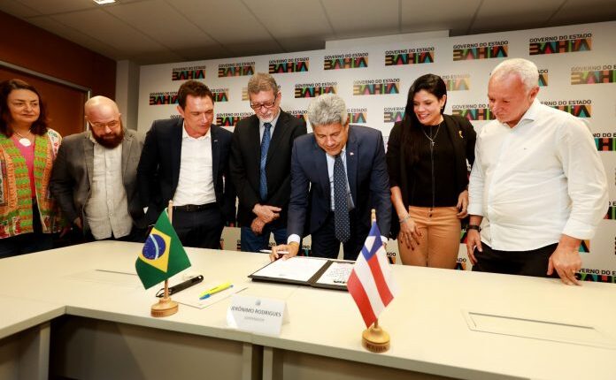As áreas da educação e abastecimento de água do município de Jaguarari, no centro norte baiano, foram beneficiadas pelo Governo do Estado, com a assinatura, na segunda-feira (2), de ordens de serviços para diversas obras, que somam um investimento de R$ 24 milhões. No pacote estão a ampliação das estações elevatórias do Sistema Integrado de Abastecimento de Água (SIAA) que atende ao município e também à cidade de Senhor do Bonfim; a implantação de Sistema de Abastecimento (SA) nos povoados de Gameleira e Jacunã, em Jaguarari; e a modernização do Colégio Estadual do Campo Petrônio Portela, no distrito de Pilar. O ato ocorreu no Centro Administrativo, em Salvador.