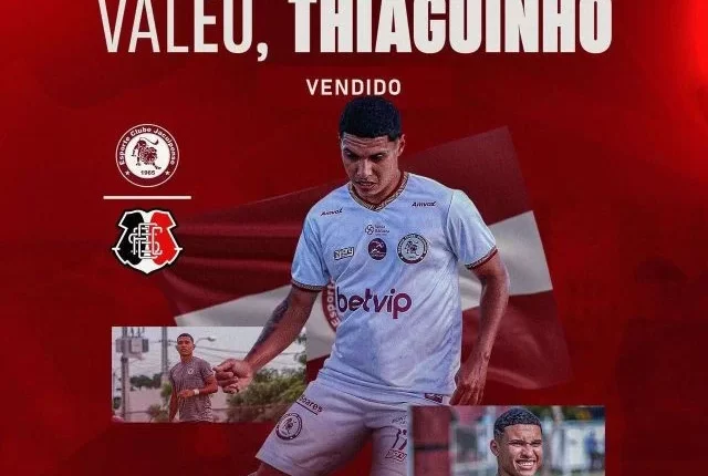 O Esporte Clube Jacuipense comunicou a venda de 70% dos direitos do atacante Thiaguinho, de 26 anos, ao time Santa Cruz.