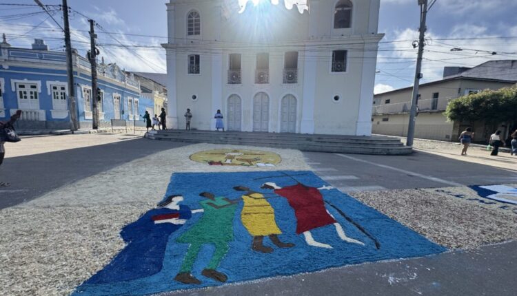 Os tapetes, feitos com materiais como serragem, areia, flores e outros elementos naturais, tomaram conta das ruas ao redor da Praça da Matriz, onde foi realizado o percurso da procissão. A confecção das obras contou com a participação de fiéis de todas as idades da Paróquia Nossa Senhora da Conceição, que trabalharam durante toda a madrugada para deixar tudo pronto a tempo da celebração.