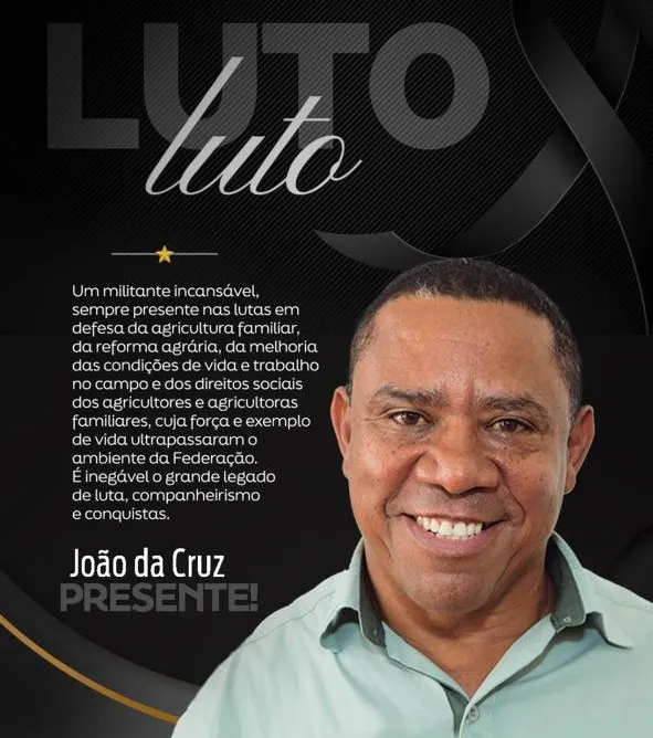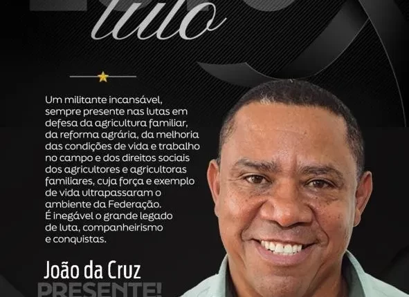 O presidente da Federação dos Trabalhadores Rurais Agricultores e Agricultoras Familiares da Bahia (FETAG‑BA), João da Cruz, faleceu em seu apartamento em Salvador na noite de terça-feira, 17, vítima de um infarto fulminante .