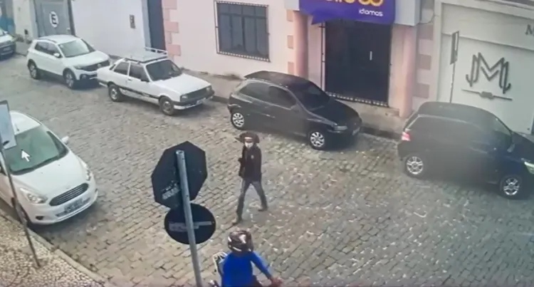 Câmeras de segurança de estabelecimentos comerciais da região registraram parte da movimentação. As imagens já estão em posse da Polícia Civil e mostram pelo menos três envolvidos: os dois assaltantes na moto e o motorista do carro de apoio.