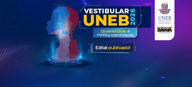 A UNEB lançou, nesta terça-feira (9), o edital de inscrição do Vestibular UNEB 2026. Os interessados devem se inscrever entre os dias 16 de setembro a 8 de outubro, exclusivamente pelo site vestibular2026.uneb.br. A taxa de inscrição é R$ 90 e deve ser paga até a data indicada no boleto bancário.