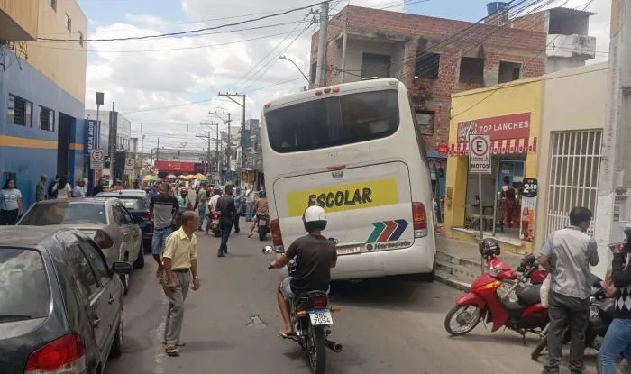 Um incidente foi registrado por volta do meio-dia desta sexta-feira (12), na Rua Marechal Deodoro da Fonseca, região central de Conceição do Coité, envolvendo um ônibus escolar, que transportava dezenas de estudantes, perdeu o controle, subiu na calçada e por pouco não tombou.