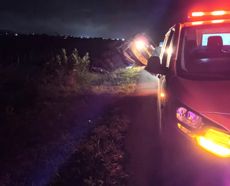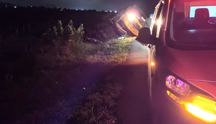 Nas primeiras horas desta quinta-feira (13), um caminhão capotou na BR-324, nas proximidades do Matadouro Frijacuípe, em Riachão do Jacuípe – BA. A Brigada Voluntária Anjos Jacuipenses foi acionada para prestar socorro às vítimas.