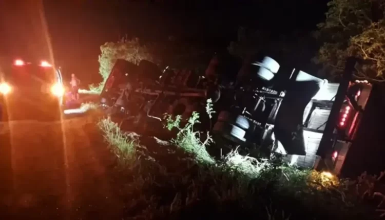 As circunstâncias que levaram ao tombamento da carreta não foram detalhadas. Fonte: Calila Noticias