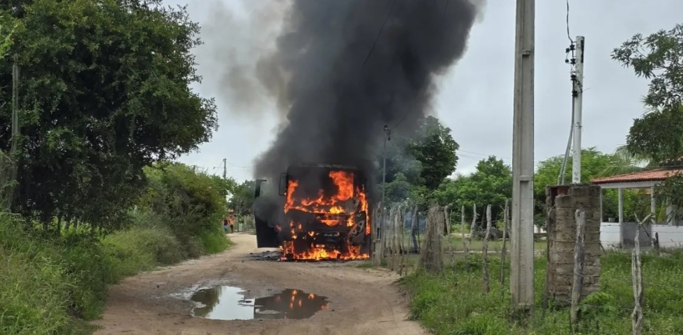 Ônibus escolar de Barrocas pega fogo enquanto recolhia estudantes na zona rural